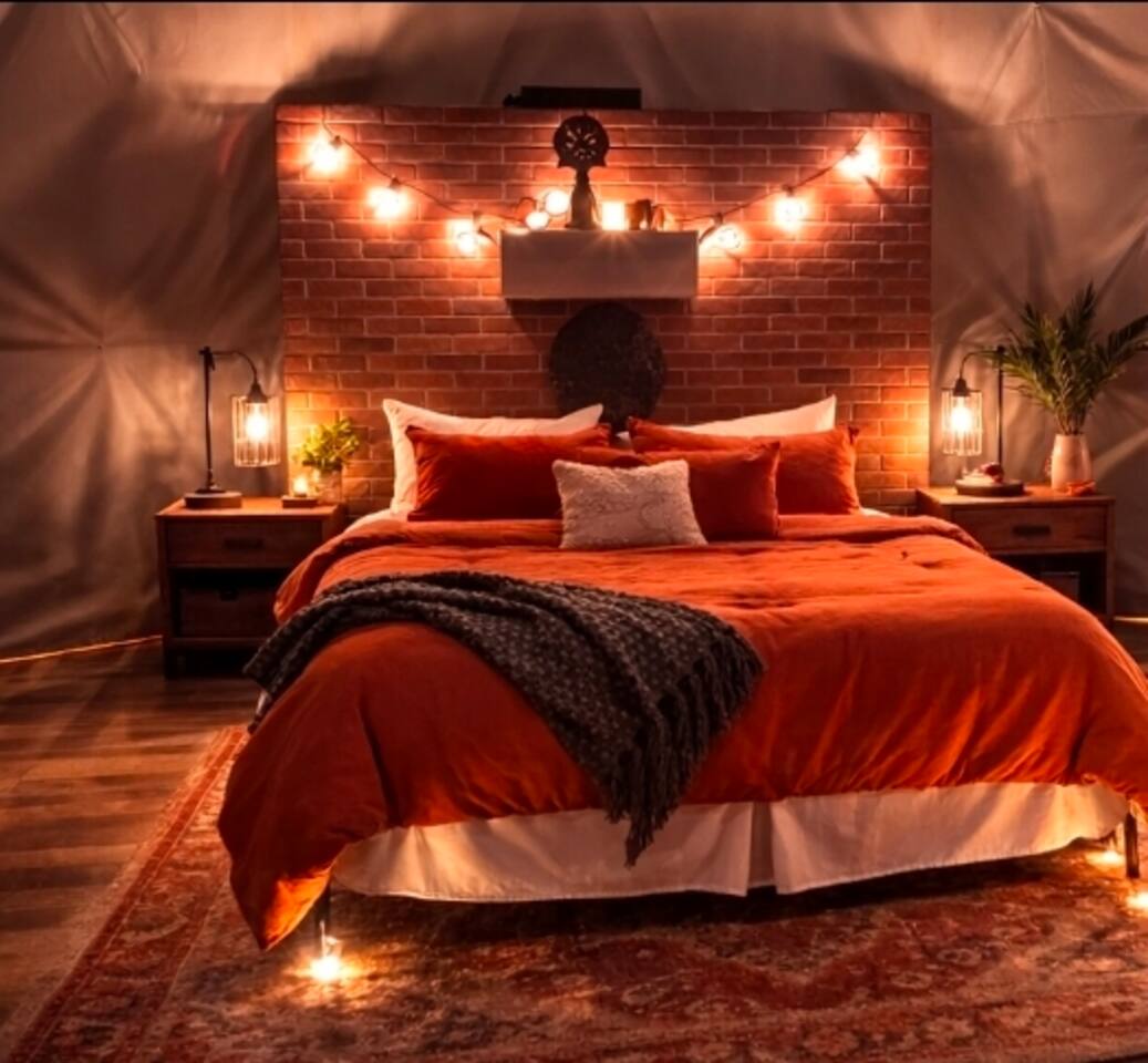 On-Site Amenities Unwind and reconnect at The Connect with fire pits, cornhole, and disc golf World-Class Entertainment Nearby Located just two minutes away, the world's largest casino, WinStar, offers endless entertainment options including a luxurious pool and spa, challenging golf courses, and live concerts at the Lucas Oil Venue. Perfect for Every Occasion Whether you're seeking a romantic getaway or an adventure with friends, our dome and the surrounding area offer the perfect escape. Water in the dome reaches a warm, comfortable shower temperature for most, but may take a few minutes to heat due to the distance from the water heater. Featuring super-comfy king bed